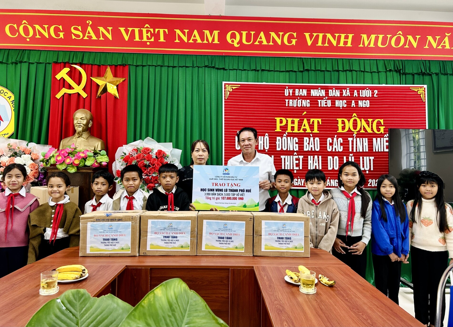 Tại Thái Nguyên, VEPIC trao 34.163 bản sách giáo khoa, trị giá hơn 603 triệu đồng, giúp các trường vùng lũ sớm ổn định việc học. Tại Cao Bằng, hơn 12.939 bản sách giáo khoa và 5.000 cuốn vở, trị giá 266 triệu đồng, đã được gửi đến các học sinh bị ảnh hưởng bởi mưa lũ. Ở Nghệ An, công ty hỗ trợ 2.605 bản sách giáo khoa, 5.000 tập vở và 50 triệu đồng tiền mặt, với tổng giá trị hơn 167 triệu đồng. Hà Tĩnh đón nhận 30.449 đầu sách cùng nhiều thiết bị học tập trị giá gần 587 triệu đồng. Tại Thừa Thiên Huế, các em nhỏ vùng A Lưới – nơi phần lớn là học sinh dân tộc thiểu số – nhận được 3.990 bản sách giáo khoa và 5.000 tập vở, tổng trị giá hơn 107 triệu đồng. Và ở Quảng Trị, hàng nghìn cuốn vở, sách và đồ dùng học tập với tổng giá trị khoảng 100 triệu đồng cũng đã được chuyển tận tay học sinh vùng ngập sâu. Tất cả tạo nên những “chuyến xe tri thức xanh” Cánh Diều – mang theo tấm lòng của những người làm giáo dục, để hành trình đến trường của các em không đứt quãng, dù lũ lụt có cuốn trôi đi bao mái nhà, bao bàn ghế, sách vở.