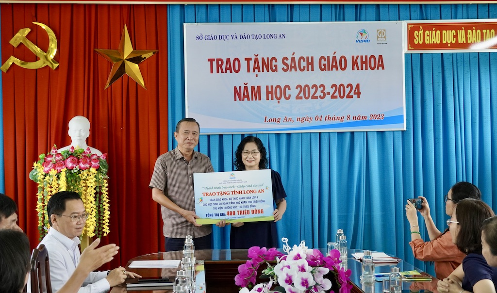 Trao tặng sách giáo khoa cho học sinh có hoàn cảnh khó khăn tại tỉnh Long An